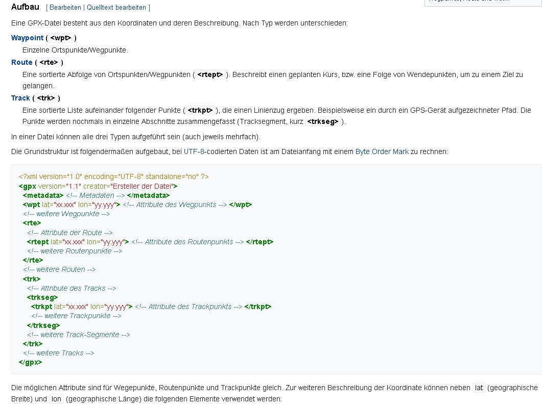 - Am Anfang einer GPX-Datei